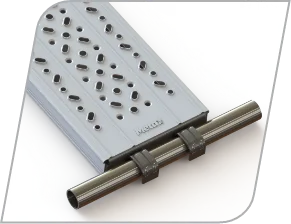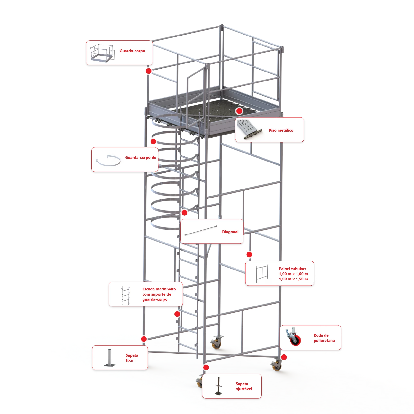 Os encaixes desse andaime são projetados para ser firmes e simples de montar, dispensando a necessidade de ferramentas especiais.