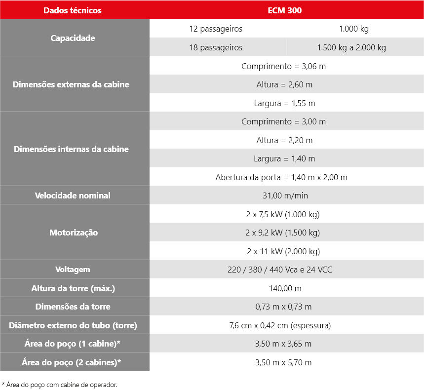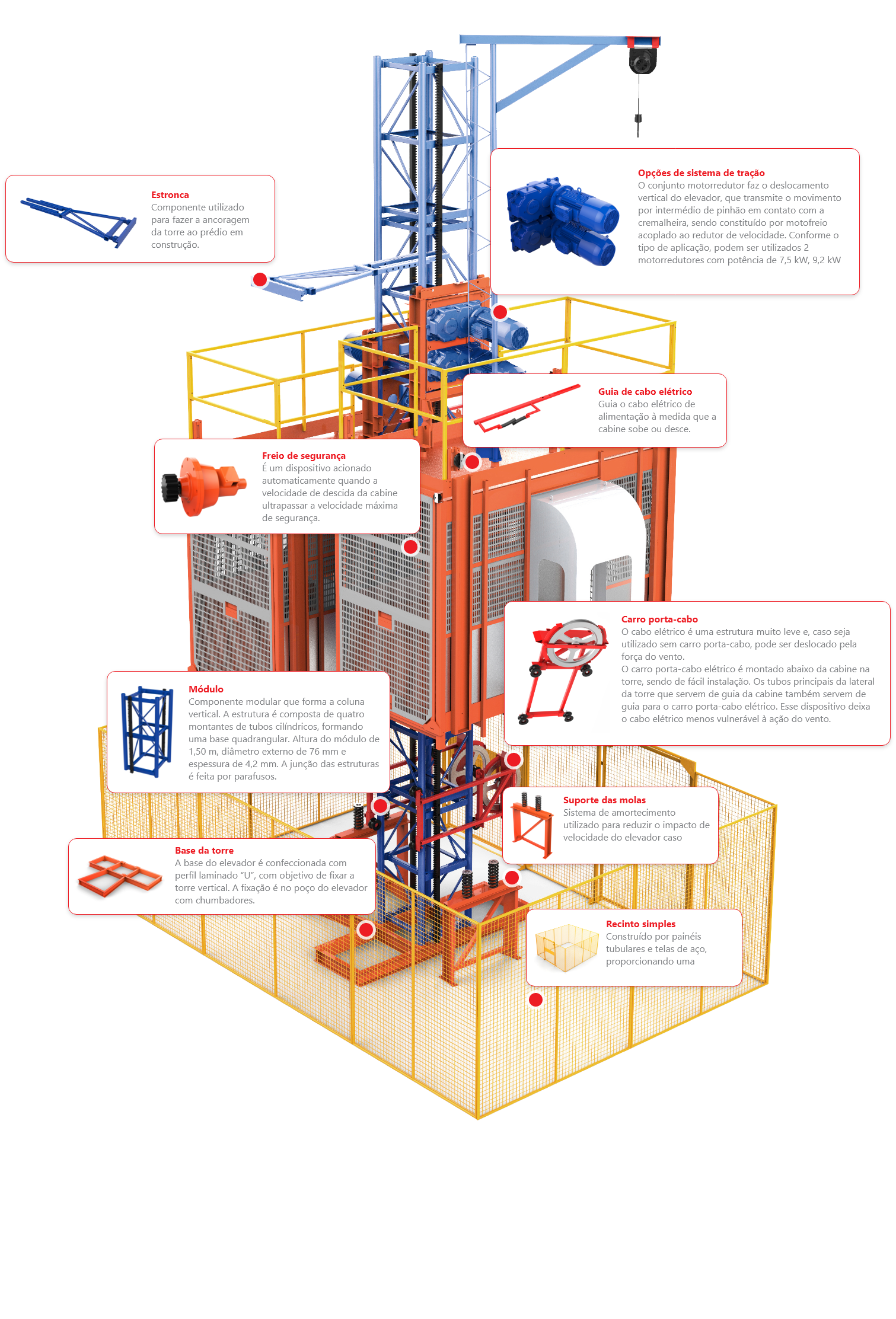 Versatilidade para transporte de pessoas e cargas a níveis elevados.