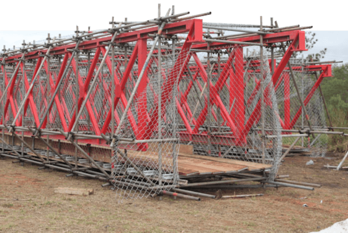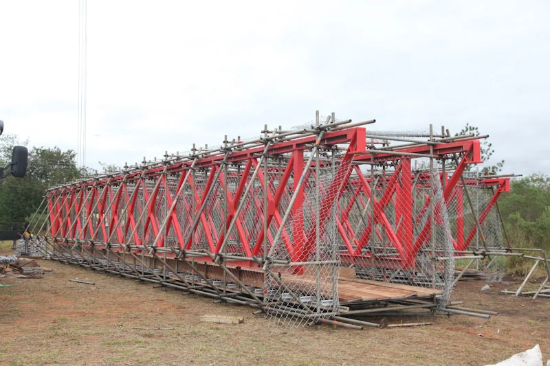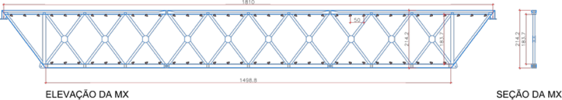 As Treliças MX215 são fabricadas em aço carbono de alta resistência em módulos de vários comprimentos, que, combinados, permitem chegar até 30,00 m. Biapoiada suporta momentos positivos de até 120 tf.m., sendo ideal para escoramentos pesados de pontes, viadutos e passarelas sobre rodovias.